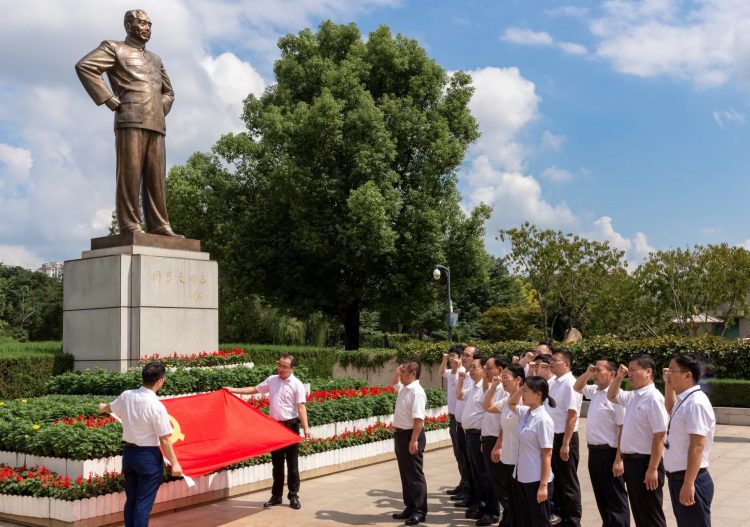 黨員們懷著崇敬的心情瞻仰了周恩來紀(jì)念館,在周恩來總理漢白玉雕像前敬獻(xiàn)花籃,靜默肅立,鄭重三鞠躬。隨后,黨員們參觀了“人民總理周恩來”陳列展,在一件件珍貴的歷史資料和實(shí)物前,大家駐足凝視,認(rèn)真聽取講解,深切緬懷周恩來總理的光輝一生,全體黨員莊嚴(yán)地舉起右拳面對(duì)鮮紅的黨旗齊聲宣誓,重溫入黨誓詞。