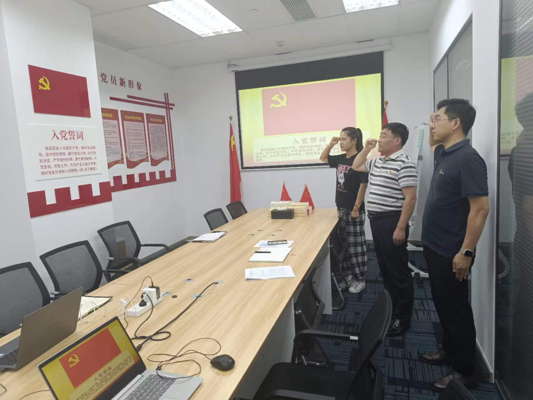參觀結(jié)束后,在東盛公司黨員活動室,由東盛黨支部書記王智帶領(lǐng)全體黨員重溫入黨誓詞,并進一步闡明了黨員入黨宣誓的重要意義,要求全體黨員要時刻以誓言來激勵自己,以誓言為標(biāo)尺,嚴(yán)格對照檢查自己,自覺地克服缺點、錯誤,始終保持共產(chǎn)黨員的共產(chǎn)主義革命性和先進性。