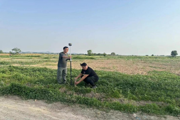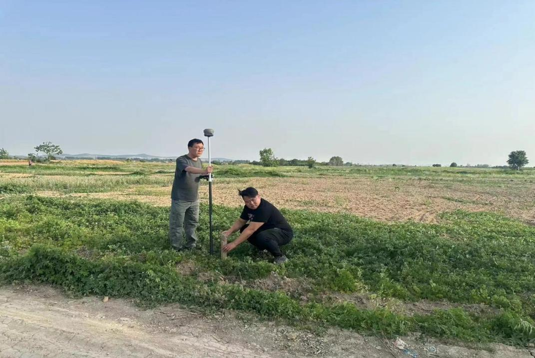 工程部左永宏、張勇等人認(rèn)真核對地塊信息、指認(rèn)土地邊界,使用GPS測繪儀等儀器圍繞地塊邊界丈量土地整體面積,記錄及整理相關(guān)數(shù)據(jù)……一系列環(huán)節(jié)有條不紊地進(jìn)行,有效保證了測量數(shù)據(jù)的真實性和準(zhǔn)確性。
