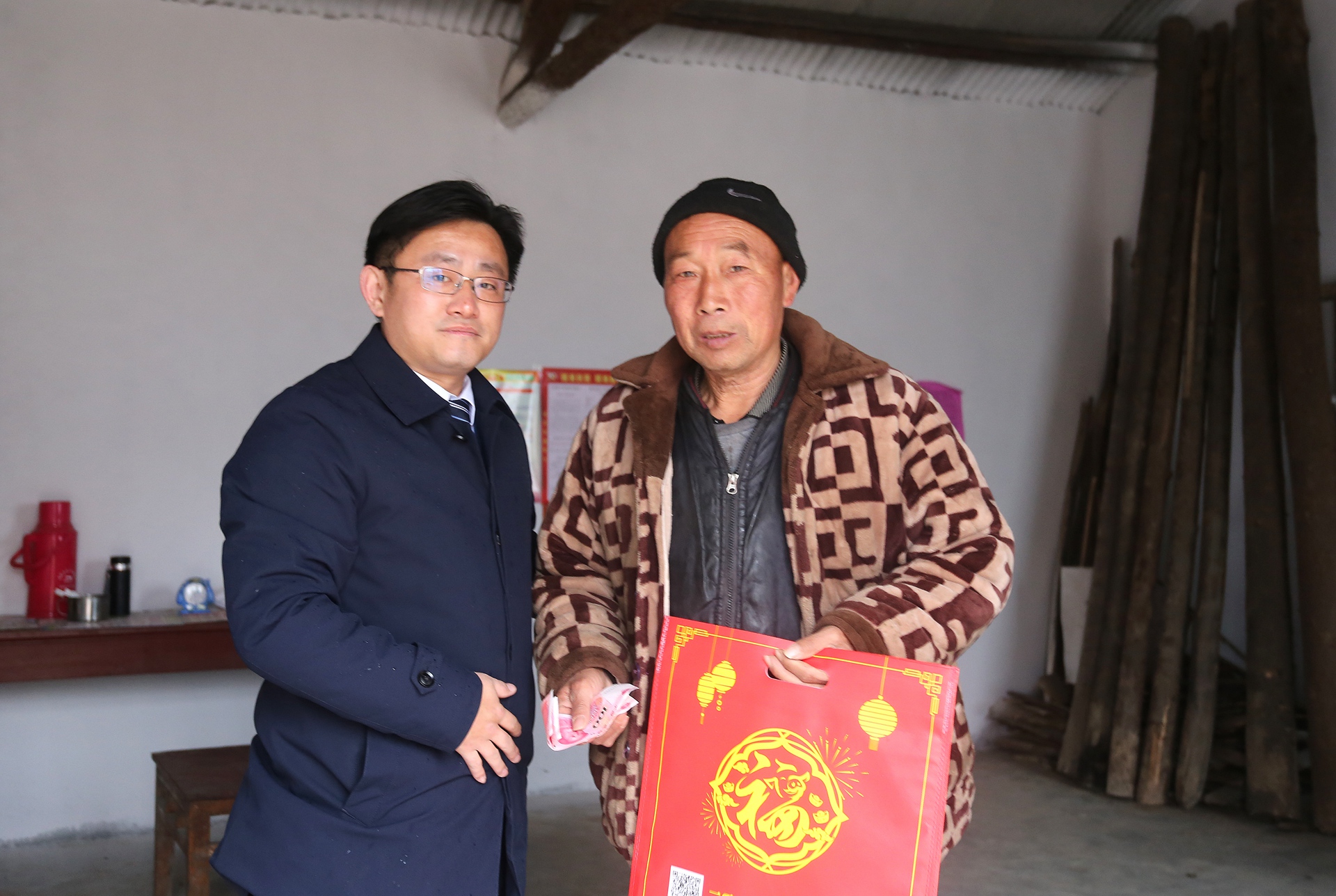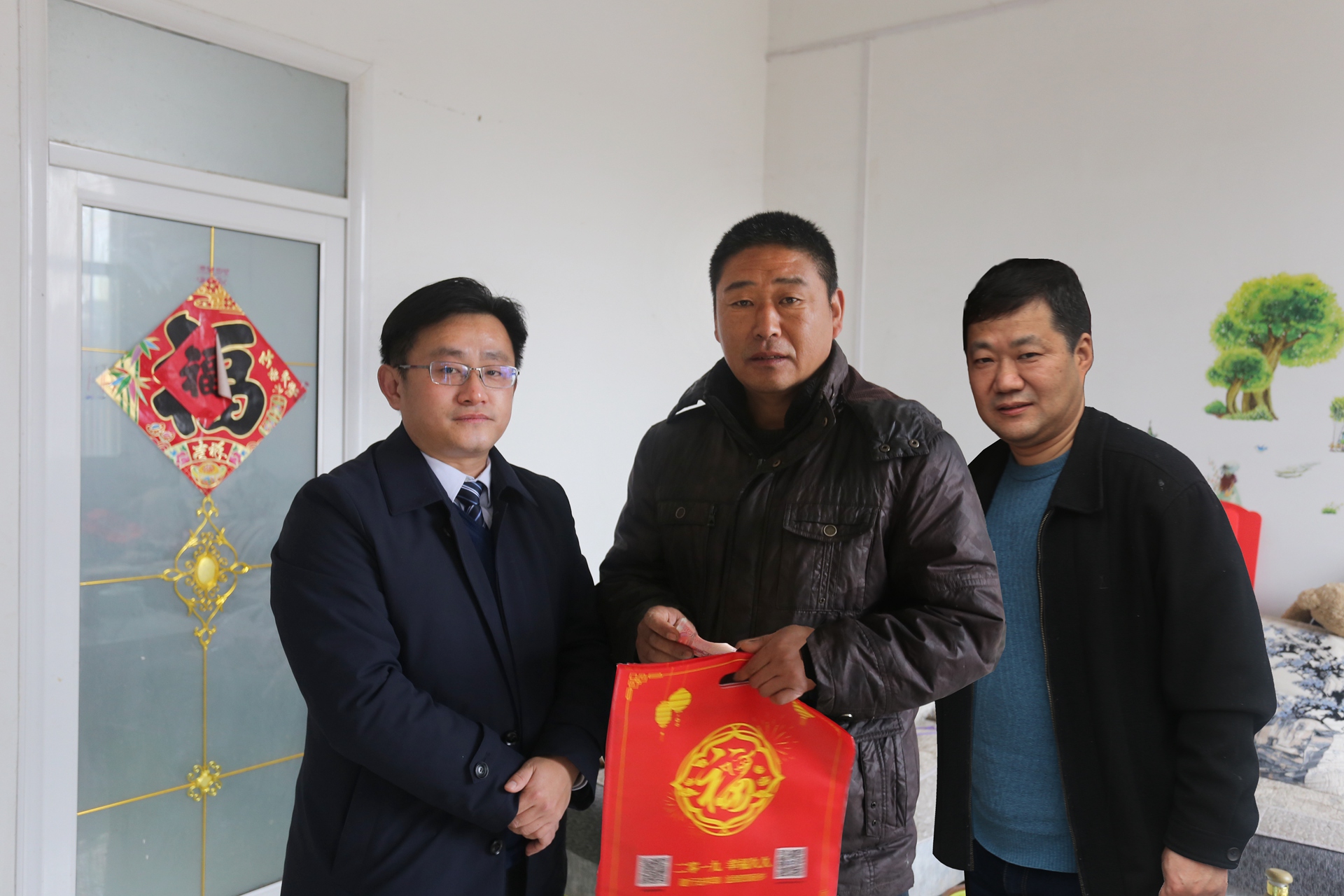 春節(jié)將至,年味漸濃。在新春佳節(jié)來臨之際,市建投集團黨委委員、副總經(jīng)理王佩劍帶領(lǐng)扶貧5組成員前往火神廟村走訪看望貧困戶丁佩久和黃傳平家庭,并為幫扶貧困戶送去春節(jié)慰問金和春聯(lián),提前送上新春佳節(jié)的問候與祝福。王佩劍每到一戶,都熱情的與他們拉家常,詳細(xì)詢問他們的身體情況、生產(chǎn)和生活現(xiàn)狀,認(rèn)真傾聽他們的訴求,叮囑他們一定要保重身體,鼓勵他們健康生活、快樂勞動。