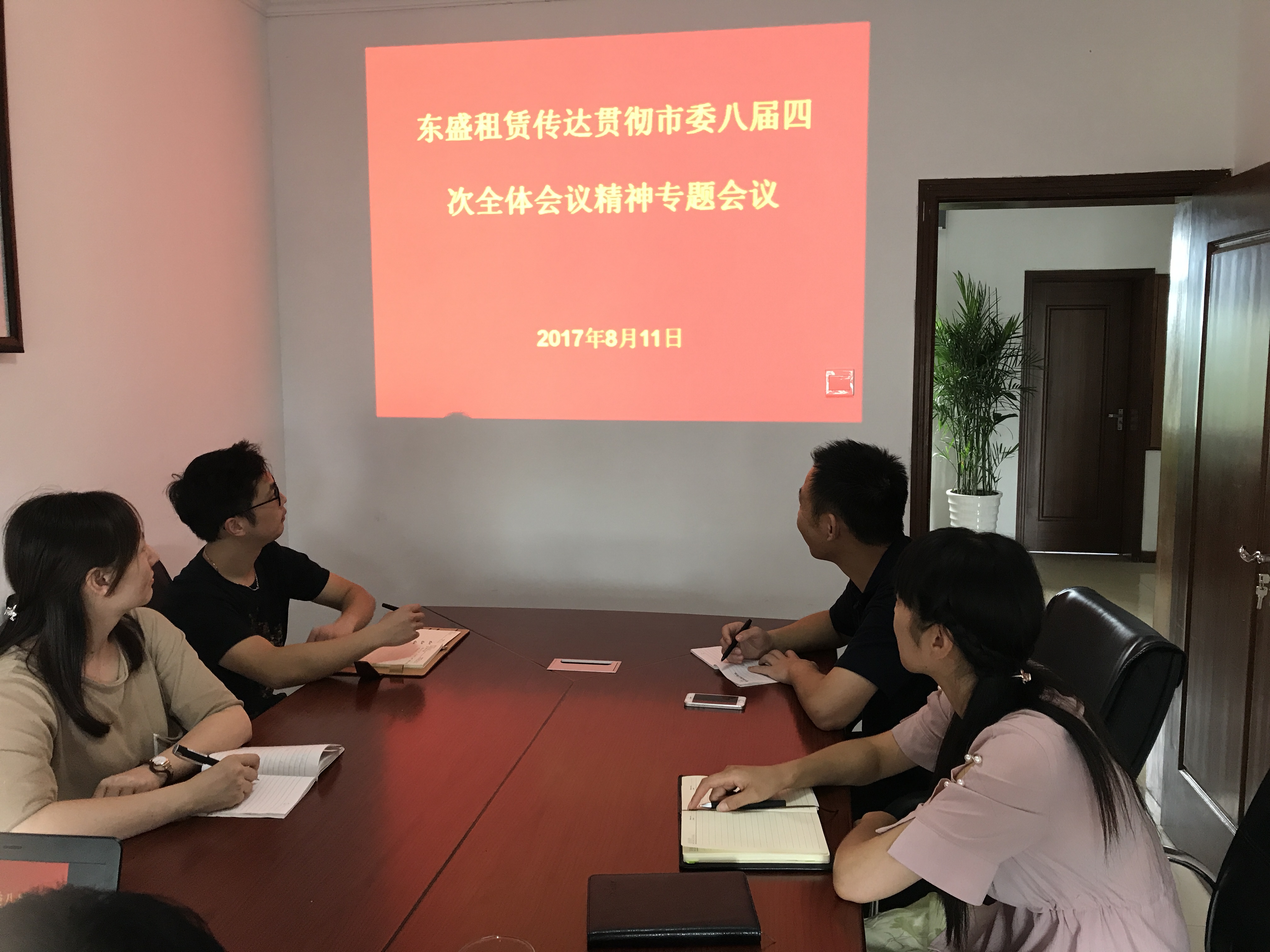 2017年8月11日下午,東盛(上海)融資租賃有限公司負(fù)責(zé)人王智召集公司全體員工在會議室傳達(dá)貫徹市委八屆四次全會精神,學(xué)習(xí)黃書記、戴市長重要講話內(nèi)容。通過學(xué)習(xí)黃書記、戴市長重要講話內(nèi)容,我們在今后工作中把全會精神作為開展好各項工作的動力,振奮精神抓開局,全力以赴促和諧,為建投集團(tuán)開創(chuàng)發(fā)展新局面做出自己最大的努力。