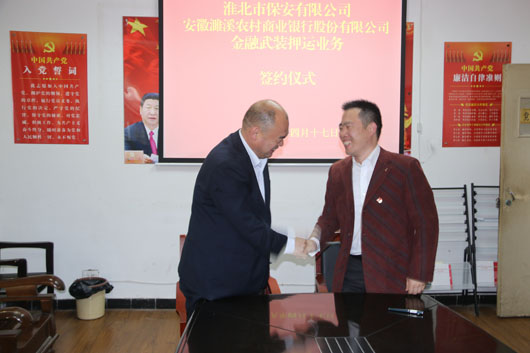 2018年4月17日下午,淮北市保安有限公司與安徽濉溪農(nóng)村商業(yè)銀行股份有限公司在二樓會議室成功舉行合作簽約儀式,這是我公司拓展業(yè)務的又一重大成果,帶來了經(jīng)濟效益的同時也提升了公司的市場競爭力,標志著我公司實現(xiàn)對全市金融系統(tǒng)武裝押運的全面覆蓋。